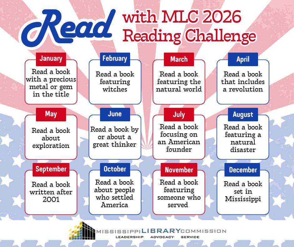 Happy New Year! Welcome to January, and the very first month of the Read with MLC 2026 Reading Challenge! This is our third year to offer a reading challenge, and this time, the Mississippi Library Commission is focusing on the America 250 project, a year-long celebration of America’s 250th birthday. Every single reading prompt this year focuses on a point in America’s history. (You can see the entire calendar of prompts at the bottom of this post.) January’s goal is to read a book with a precious metal or gem in the title. What does that have to do with American history? Check that out, as well as some suggestions on meeting this month’s challenge, below!